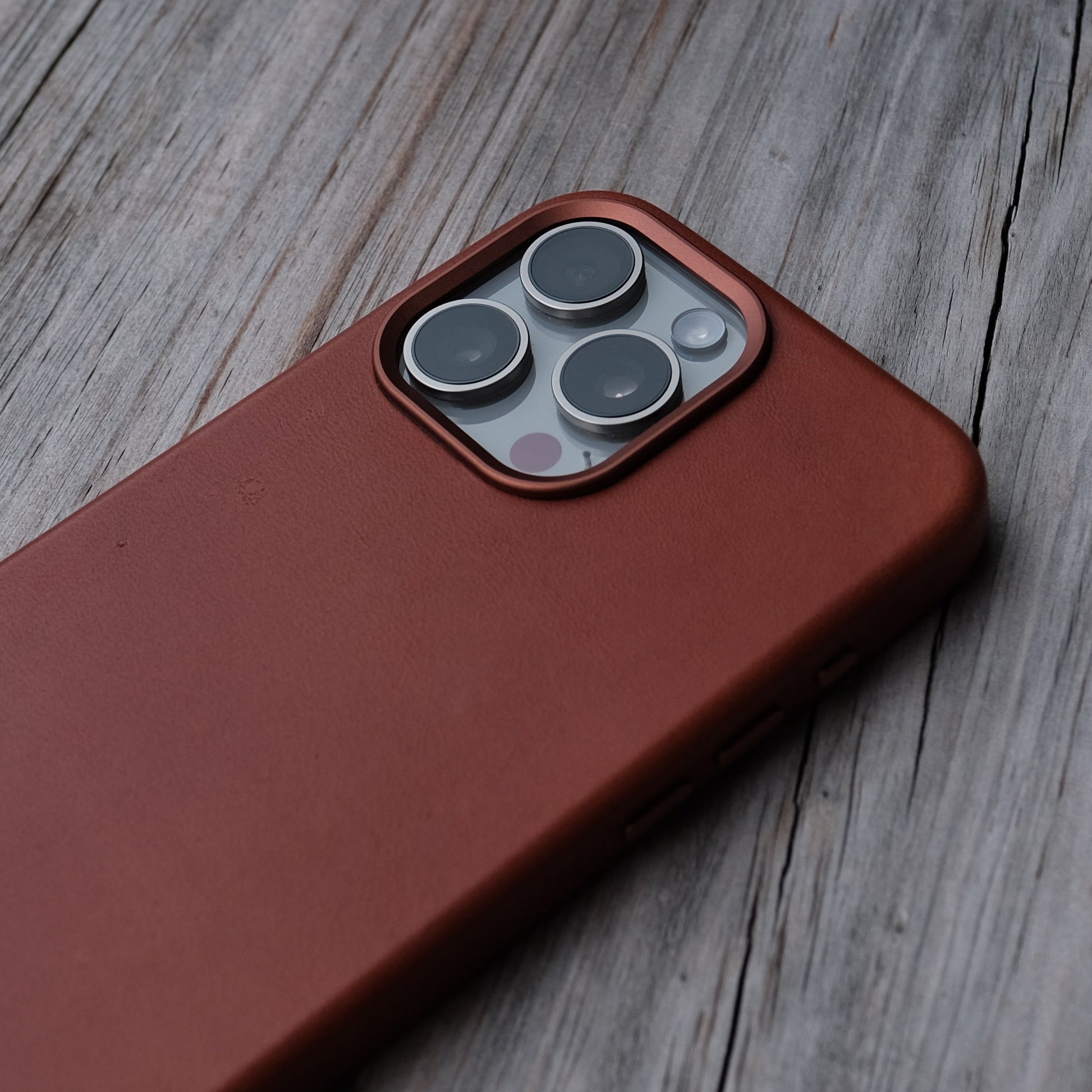 Luxurious full-grain leather case for iPhone 15 Pro Max.